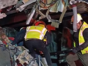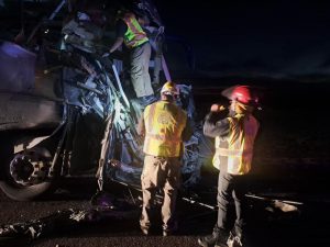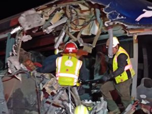 Chihuahua, Chih., a 03 de noviembre de 2023-. Durante la tarde-noche de ayer, de regreso a Chihuahua, cerca de Bermejillo, Durango, la comitiva de la Coordinación Municipal de Protección Civil enviada a Guerrero para realizar trabajos de apoyo en la catástrofe que se vive allá, se toparon con un accidente de camiones de pasajeros, por lo que de inmediato se acercaron a auxiliar.
