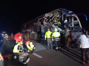 Se trató de un accidente donde estuvo involucrado un camión de la línea Chihuahua procedente de Zacatecas con destino a Cd. Juárez, del cual, cinco personas resultaron con lesiones graves, donde algunos se encontraban prensados entre los fierros. De la otra unidad sin denominación visible, resultaron dos personas fallecidas.