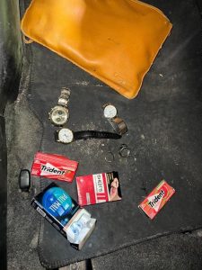 En el primero habría obtenido más de 100 mil pesos en efectivo, una terminal bancaria, 2 celulares y 50 encendedores, mientras que en el segundo obtuvo también una cantidad de dinero en efectivo, una esclava de oro, las llaves de un auto Dodge Avenger y mil cajetillas de cigarros. En los eventos se observó un auto Nissan de color guinda cuya característica era la falta de la facia de la defensa trasera, el cual fue localizado en la colonia ya mencionada con apoyo de agentes investigadores, cámaras particulares y de la Plataforma Escudo Chihuahua.
