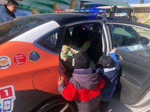 Durante la ceremonia estuvo presente también la instructora Cecilia Aragón, para mostrar a las y los niños el funcionamiento del equipo básico de una de las patrullas modificadas DARE, en la que utilizaron el altavoz y encendieron los “códigos” sonoros de la unidad, así como la botarga de este grupo, “Darío”, para convivir, tomarse fotografías y entregar gorras a los estudiantes.