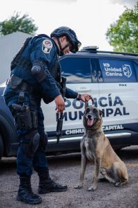 La Policía Municipal de Chihuahua cuentan con perros altamente adiestrados y capacitados para realizar labores de rescate en desastres, detección de sustancias ilícitas o armas y búsqueda de personas.