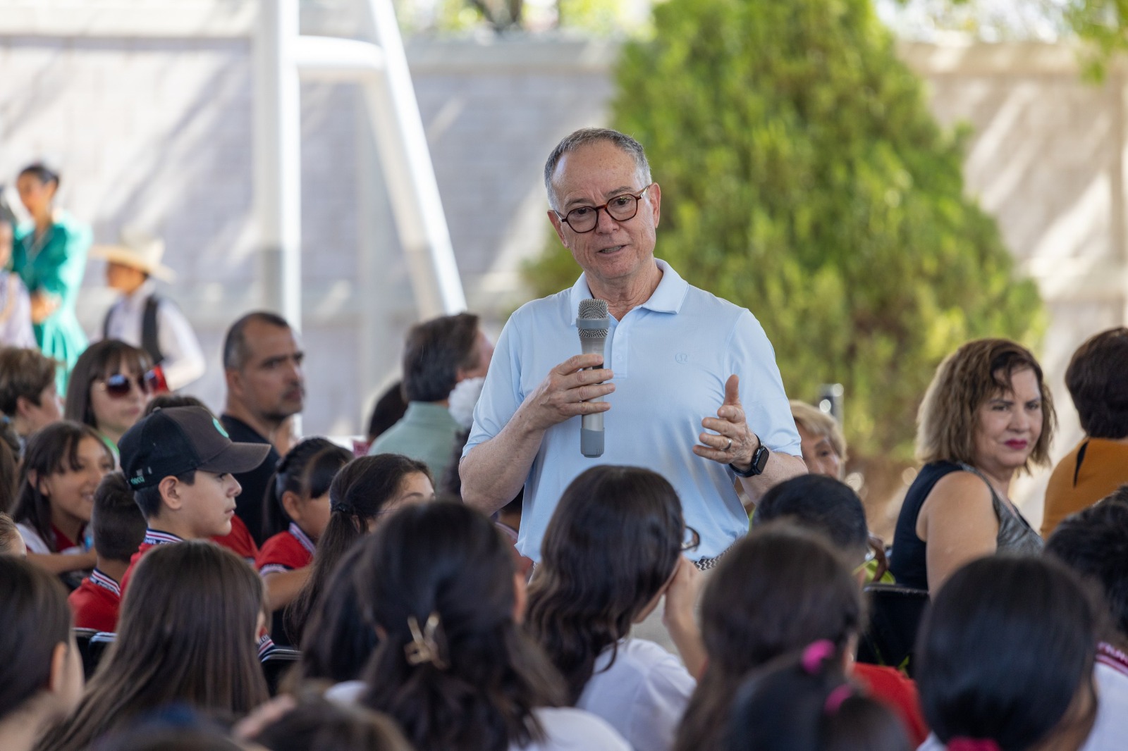 En su mensaje, el Alcalde invitó a los niños a aprovechar los espacios que tiene su escuela para aprender y conocer a través del juego, ya que el disfrutar lo que se hace no se siente como trabajo; por ello, los exhortó a seguir con sus estudios para cumplir sus metas y sueños.
