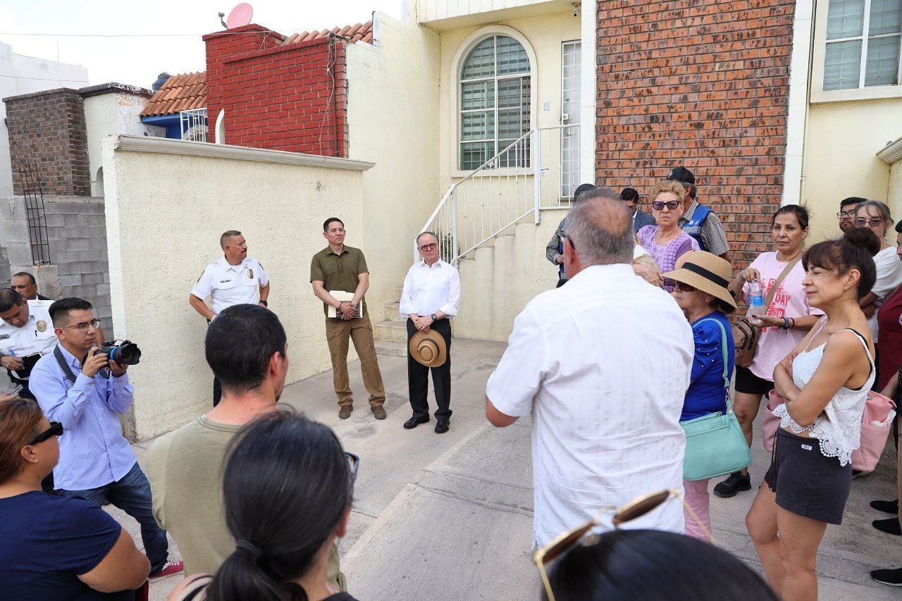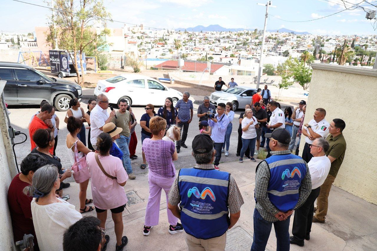 Chihuahua, Chih. A 4 de julio de 2024.- El alcalde Jorge Cruz Russek, acudió por segunda vez a la colonia Arboledas, para informar a los vecinos los avances que el Gobierno Municipal obtuvo tras el primer encuentro celebrado hace 20 días y donde los habitantes expresaron la problemática que presenta esta zona debido a las 175 viviendas abandonadas por la constructora.