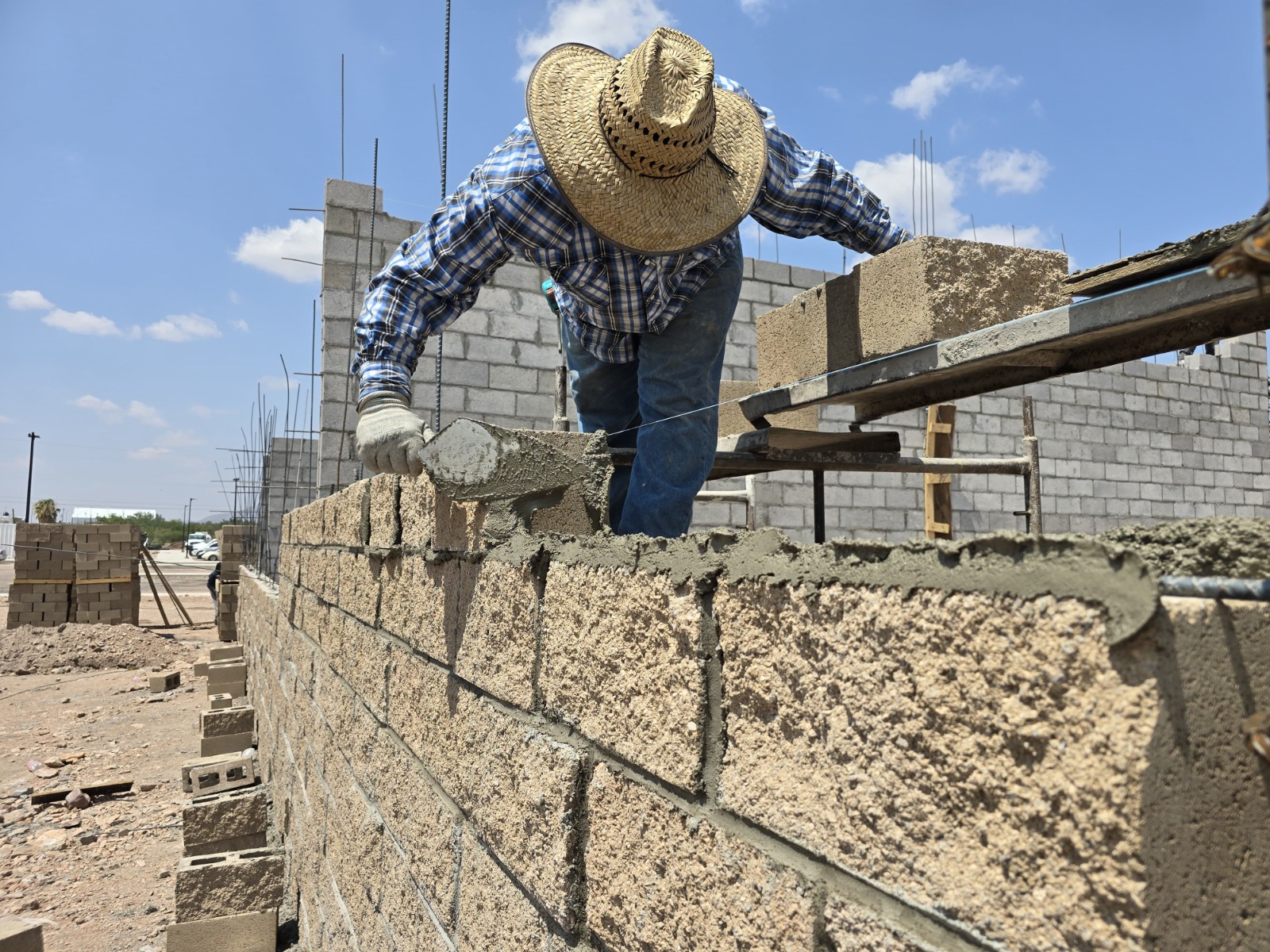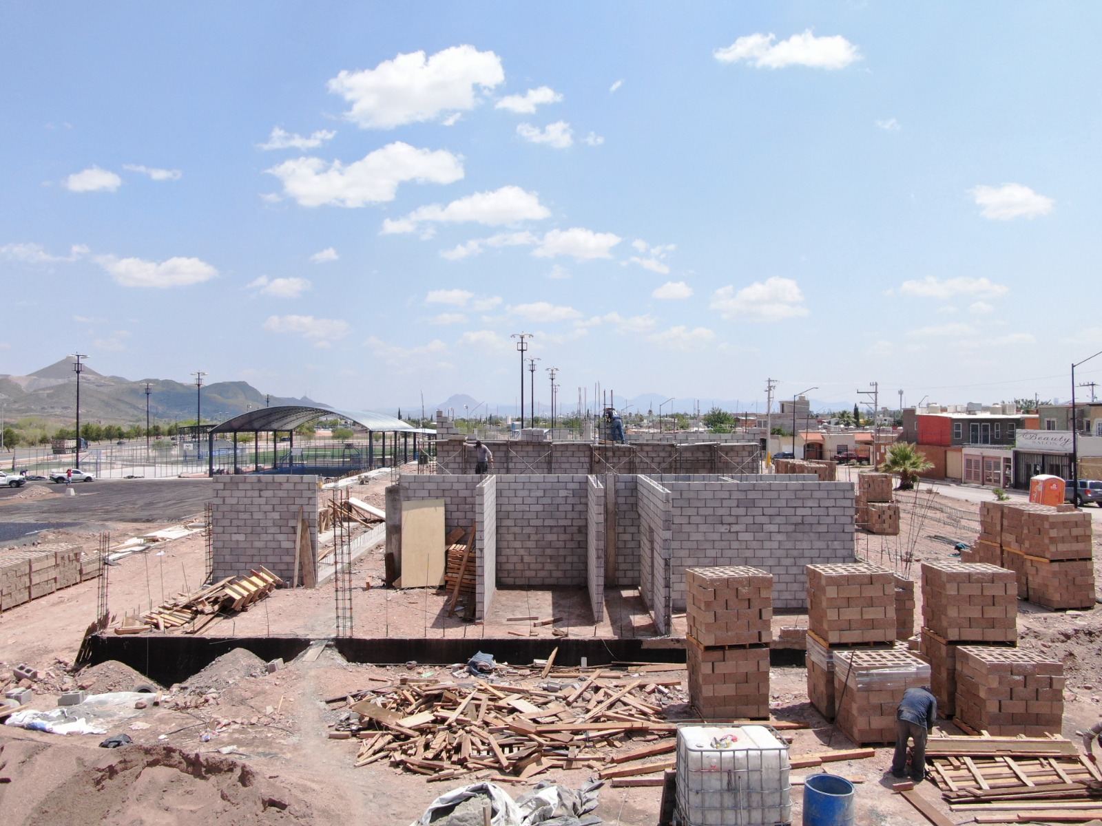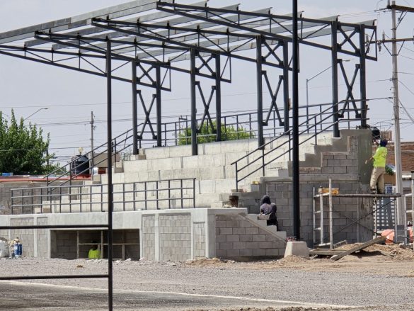 La Dirección de Obras Públicas encargada de la construcción de esta tan importante infraestructura, asegura que el ritmo de trabajo es adecuado de acuerdo al plan de obra, y en este momento se encuentran interviniendo en la construcción de banquetas que conforman el Polideportivo, así también como los taludes a base de concreto de las canchas de tenis y softbol.