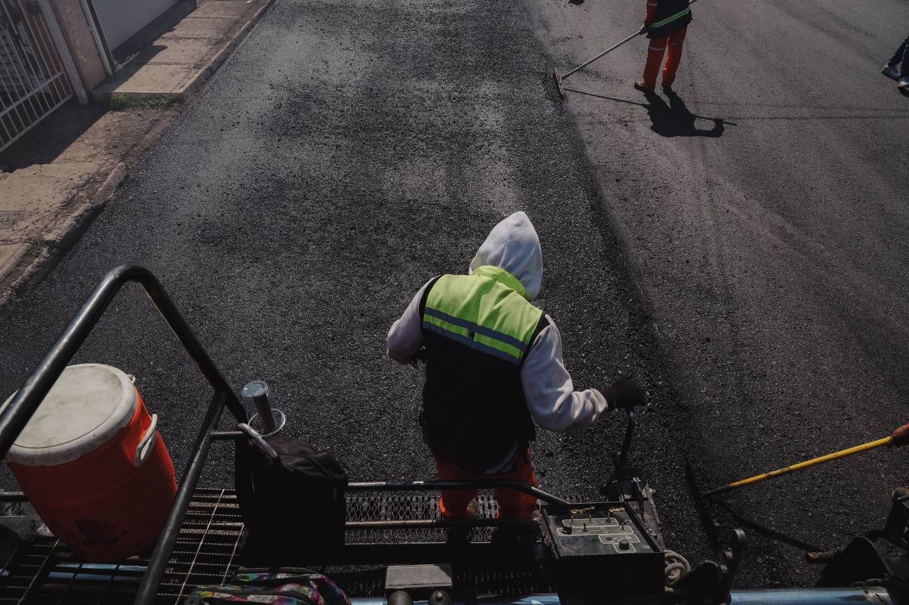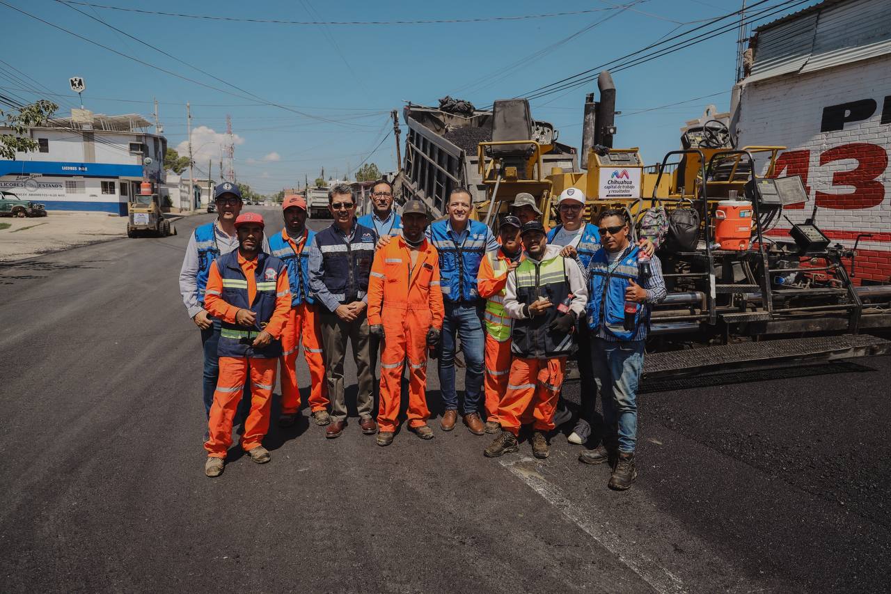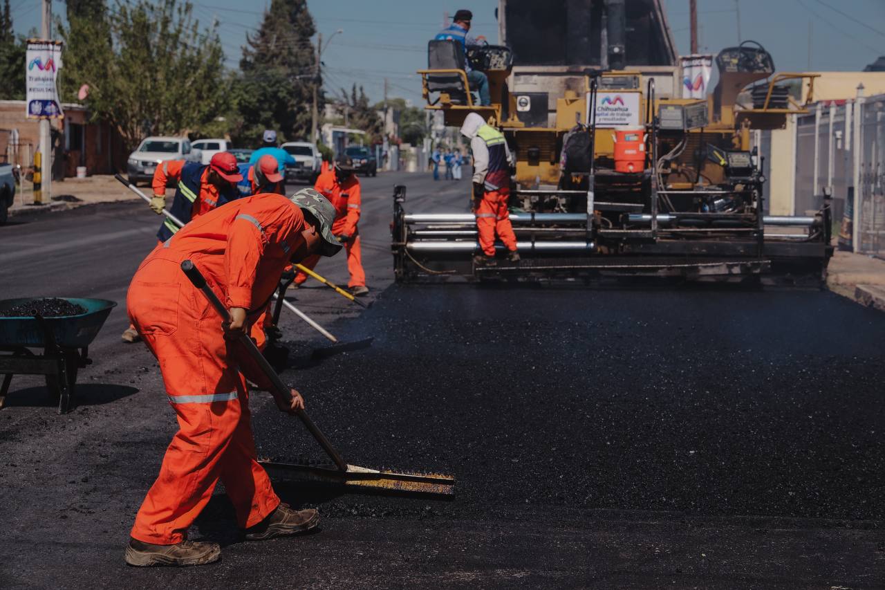 Se trabaja con mezcla de asfalto caliente desde la calle Ojinaga hasta la Francisco Villa, con una inversión de 3 millones y medio de pesos, en un área total de 12 mil 540 metros cuadrados, para beneficio de 60 mil personas de la zona.