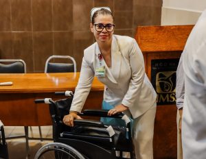 Mercedes Banda, esposa del secretario General del Sindicato de Trabajadores del IMSS en Chihuahua, Jorge Herrera Navarro, mostró su agradecimiento y mencionó lo indispensable que es este equipo ortopédico para la labor del personal, así como para la institución misma.