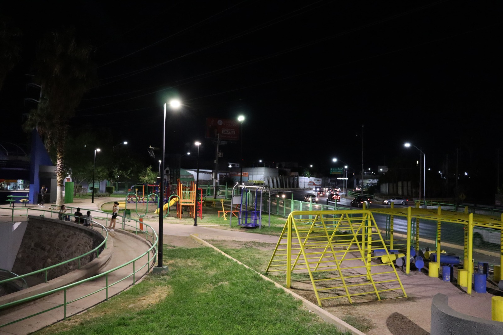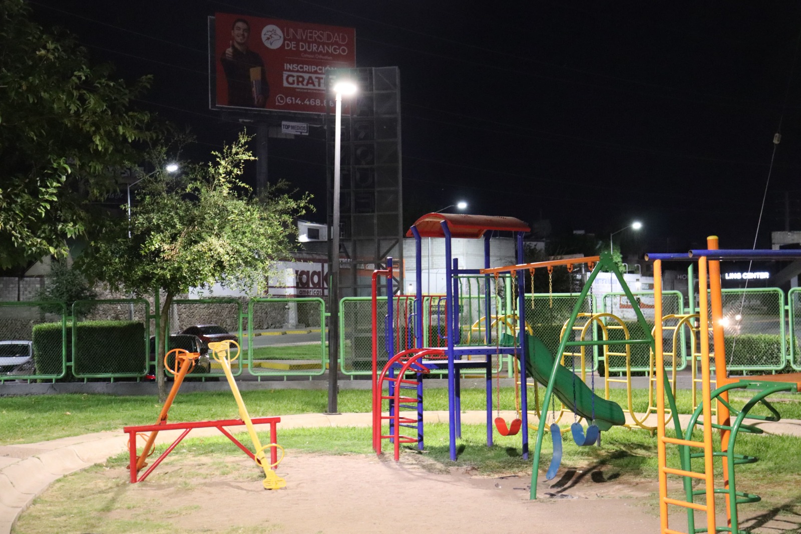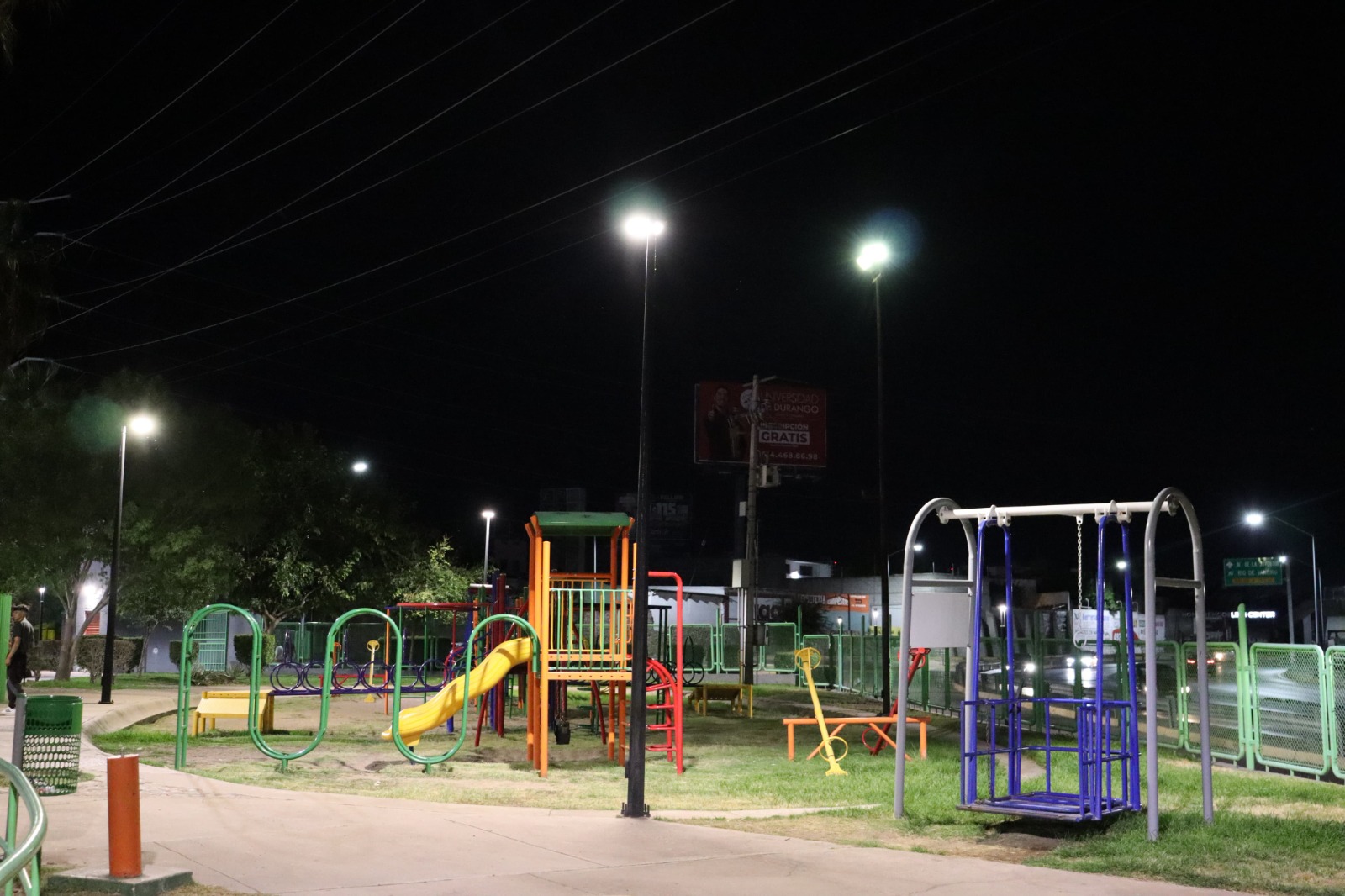 Chihuahua, Chih. A 2 de septiembre de 2024.- El Gobierno Municipal, a través de la Dirección de Mantenimiento Urbano, modernizó el alumbrado público del parque Aventura, ubicado en las inmediaciones de la avenida La Cantera, para mejorar la visibilidad y seguridad de los usuarios.