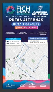 En la ruta 3 Granjas en sus ramales inverso y directo, circularán por avenida Teófilo Borunda, para incorporarse a la avenida Ocampo, proseguir por Paseo Bolívar, luego calle 4ª y continuar su trayecto normal por la avenida 20 de Noviembre.
