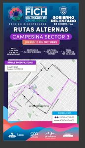 En la ruta Campesina en su ramal Sector 3, el trayecto será por la avenida 20 de Noviembre, para dirigirse a la zona centro de la capital por la avenida Independencia, continuar por la Niños Héroes y retomar por la vía Juárez, luego por la avenida Pacheco.