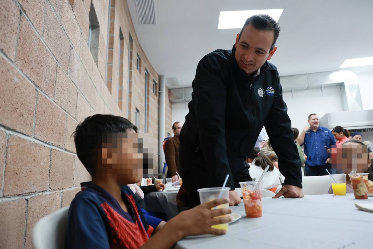 Chihuahua, Chih. A 12 de noviembre de 2024.- Como parte del compromiso del Gobierno Municipal con las familias de Punta Oriente, el alcalde Marco Bonilla y la presidenta del DIF Municipal, Karina Olivas, pusieron en funcionamiento el comedor comunitario del CEDEFAM que brindará alimentación a niñas, niños y adolescentes, así como a personas en situación de vulnerabilidad.
