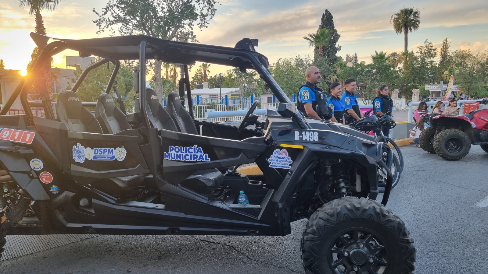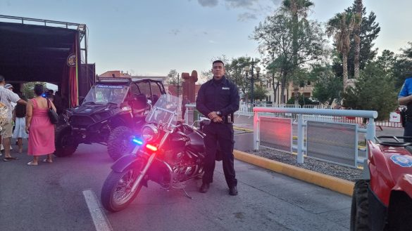 H. Ciudad de Chihuahua, Chih. A 15 de junio de 2025.- Con el fin de convivir y mostrar la capacidad policial con que cuenta la Dirección de Seguridad Pública Municipal (DSPM), las y los elementos de los diferentes grupos especiales estuvieron mostrando parte del parque vehicular y equipamiento en el “Festival Antojos” que se desarrolla en el Paseo Bolívar.