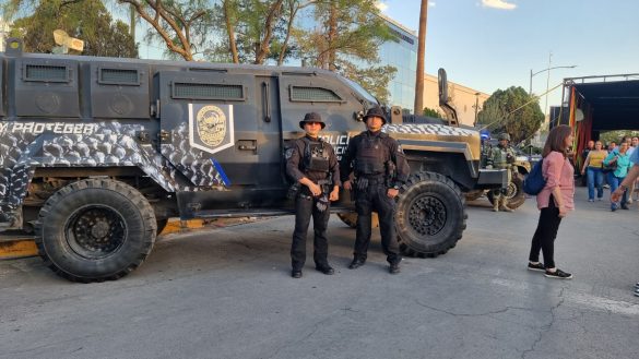 Las familias aprovecharon la presencia de los uniformados para tomarse fotos con ellos y todo el equipamiento que cuenta la corporación para servir y proteger a los chihuahuenses que habitan en el municipio.