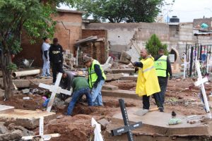 *H. Ciudad de Chihuahua, Chih., a 1 de julio de 2025.-*_ Derivado de las fuertes lluvias que se registraron ayer al norte de la capital del estado, el Gobierno Municipal a través de la Dirección de Servicios Públicos Municipales trabaja en las afectaciones que se registraron en el Panteón Municipal número 3.