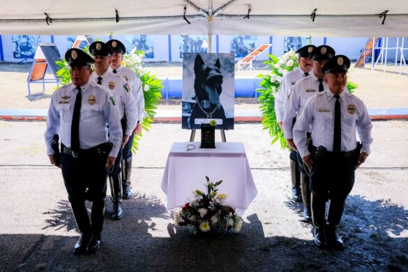 A su vez, a Yadira Sánchez y Carlos Meléndez quienes eran sus compañeros directos de trabajo, les dio el pésame y reconoció su entrega y compartir el sentimiento de darle honor a este canino que tenía nueve años de vida y seis de servicio dentro de la Dirección de Seguridad Pública Municipal.