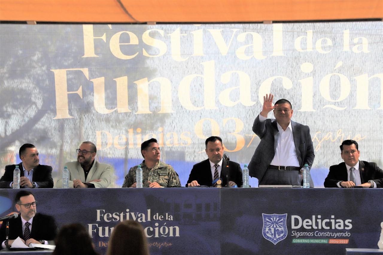 En el marco del 93 Aniversario y de la entrega de la Medalla al Mérito Ciudadano Fundadores por parte del Ayuntamiento de Delicias, a nombre de la Gobernadora Maru Campos, el Fiscal General del Estado, César Jáuregui Moreno, expresó un reconocimiento a quienes han hecho de esta ciudad un motor de desarrollo.