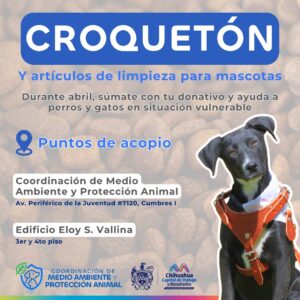 La Coordinación de Medio Ambiente y Protección Animal, invita a “Croquetón”, donde empresas, comercios y ciudadanía podrán donar croquetas y artículos de limpieza para beneficio de perros y gatos en situación vulnerable, mejorando su cuidado y fortaleciendo el apoyo a refugios del Gobierno Municipal.