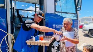 El Gobierno del Estado, a través de la Secretaría de Desarrollo Humano y Bien Común (SDHyBC), llevó el comedor móvil de NutriChihuahua a más colonias de la capital, para la distribución de platillos calientes a la población.