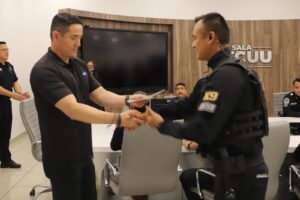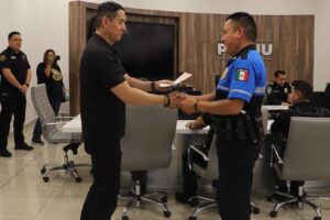 Con el objetivo de reconocer el compromiso, la valentía y la entrega diaria de quienes trabajan por la seguridad de las familias chihuahuenses, el Gobierno Municipal realizó la entrega de bonos de alto impacto a elementos destacados de la Dirección de Seguridad Pública Municipal y del Heroico Cuerpo de Bomberos.